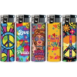 Elektronische aansteker hervulbaar – Design Love & Peace – Display 50 stuks
