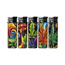 Elektronische aansteker hervulbaar – Design Weed Garden – Display 50 stuks