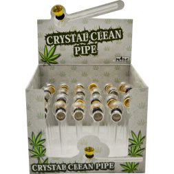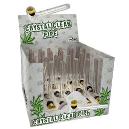 Crystal Clean Pipe – Transparante glazen pijp met metalen steekkop – 24-delige display