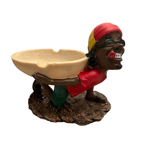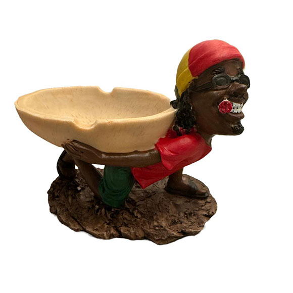 Rasta Jamaican Asbak Gardener is een levendige kunsthars asbak met decoratie en een relaxte Rastaman op de rand die geniet van een Sigaret/joint. Hittebestendig, 9 cm in diameter, met twee inkepingen voor sigaret/joints. Perfect voor een unieke en ontspannen sfeer.