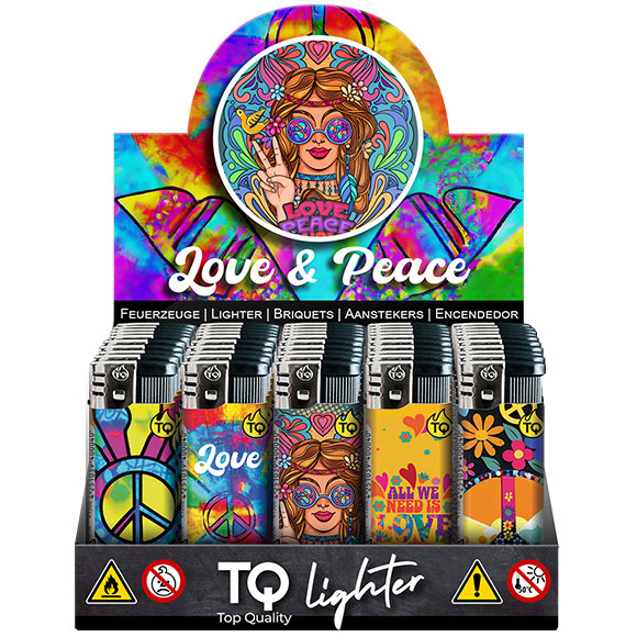 Elektronische aansteker hervulbaar – Design Love & Peace – Display 50 stuks