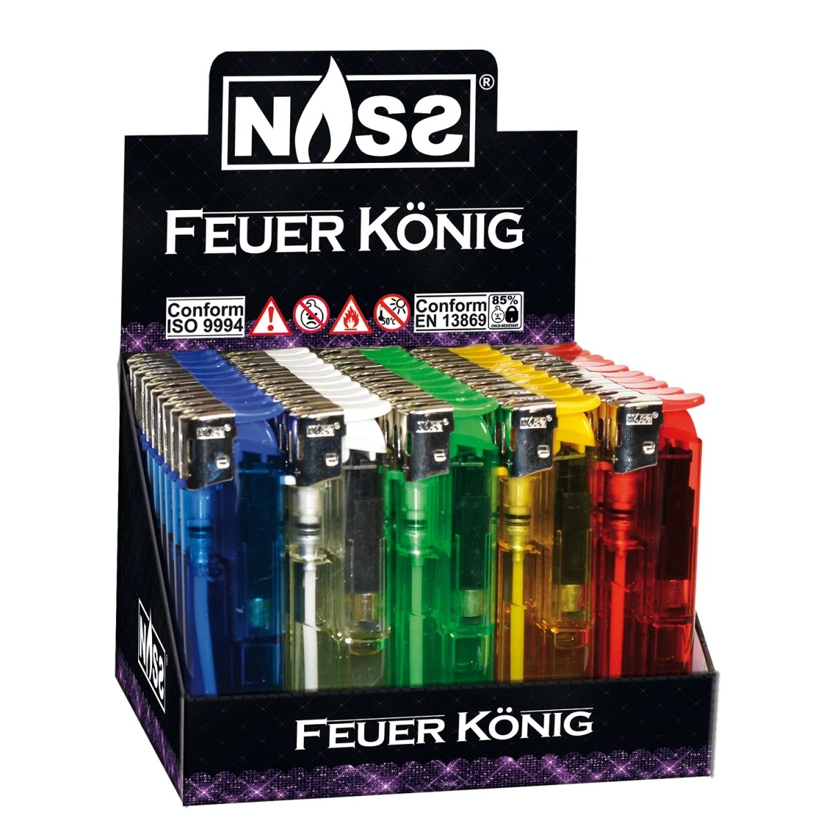- aanstekers worden geleverd in een display van 50 stuks.