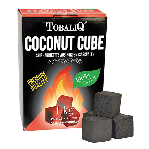 TOBALIQ® COCONUT CUBE is pure natuurlijke houtskool gemaakt van kokosnootschalen voor originele waterpijpen.